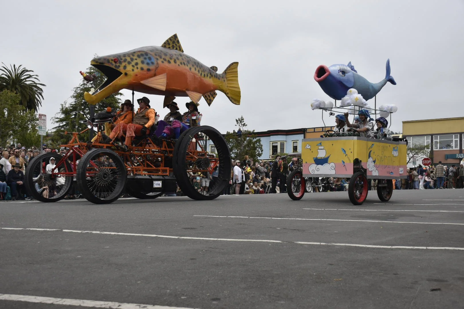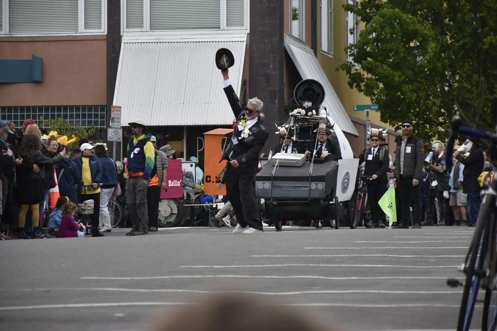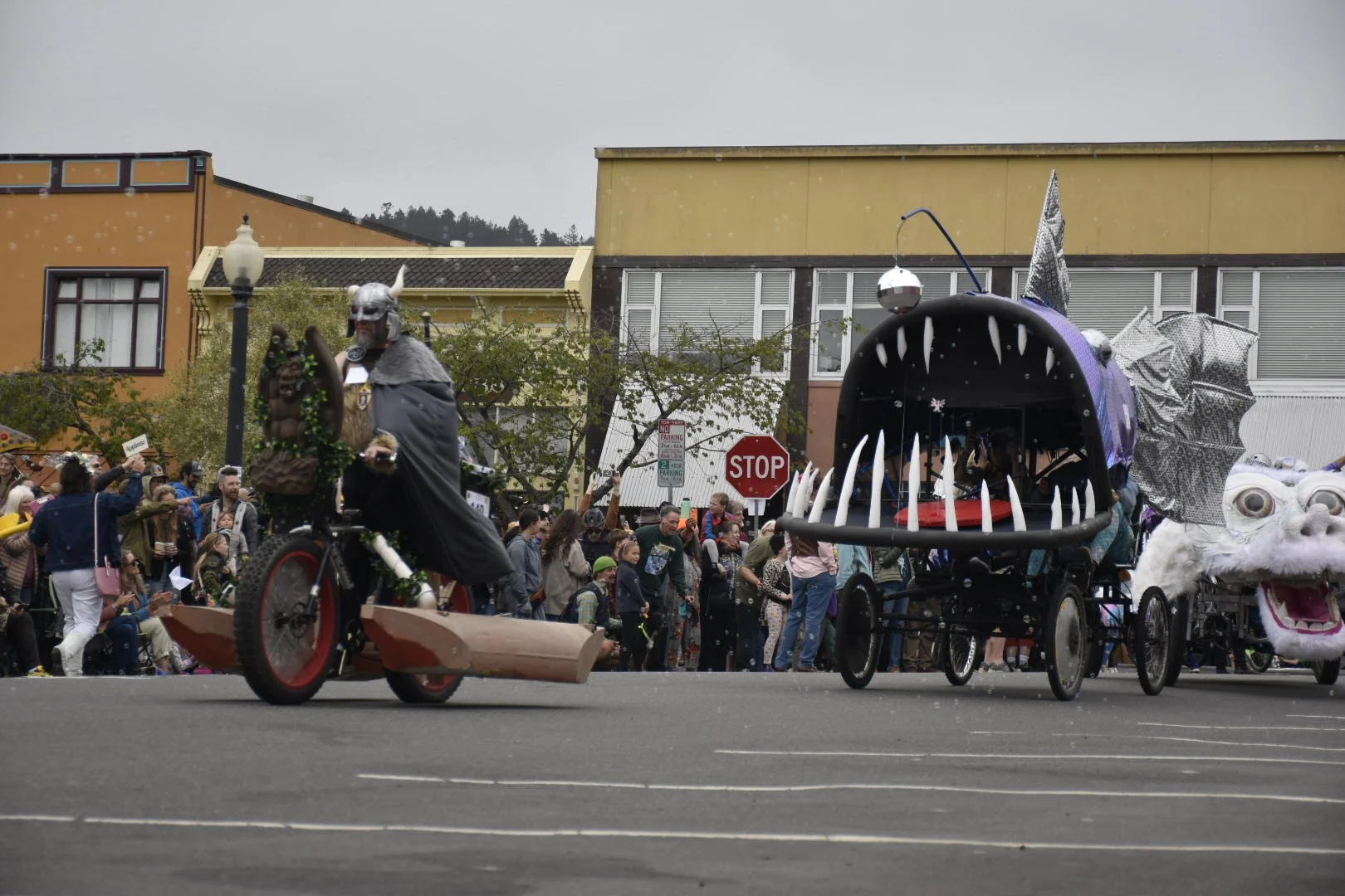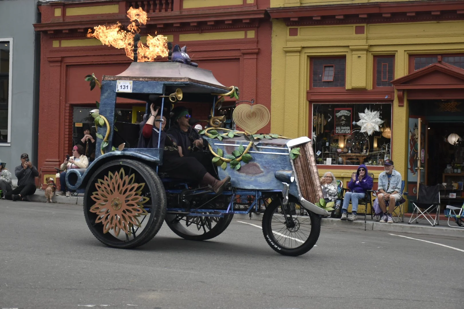 Peons and Pit Crew ride by on cycles of all sorts (Lilly Dewberry)