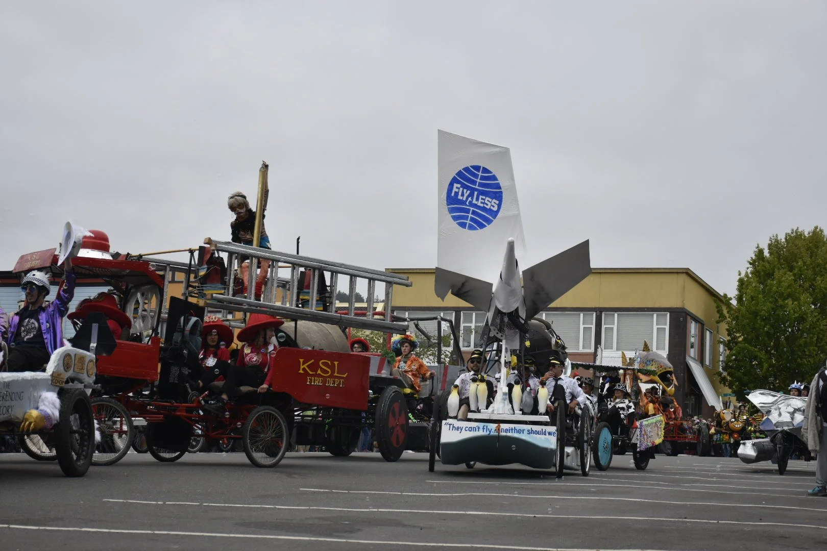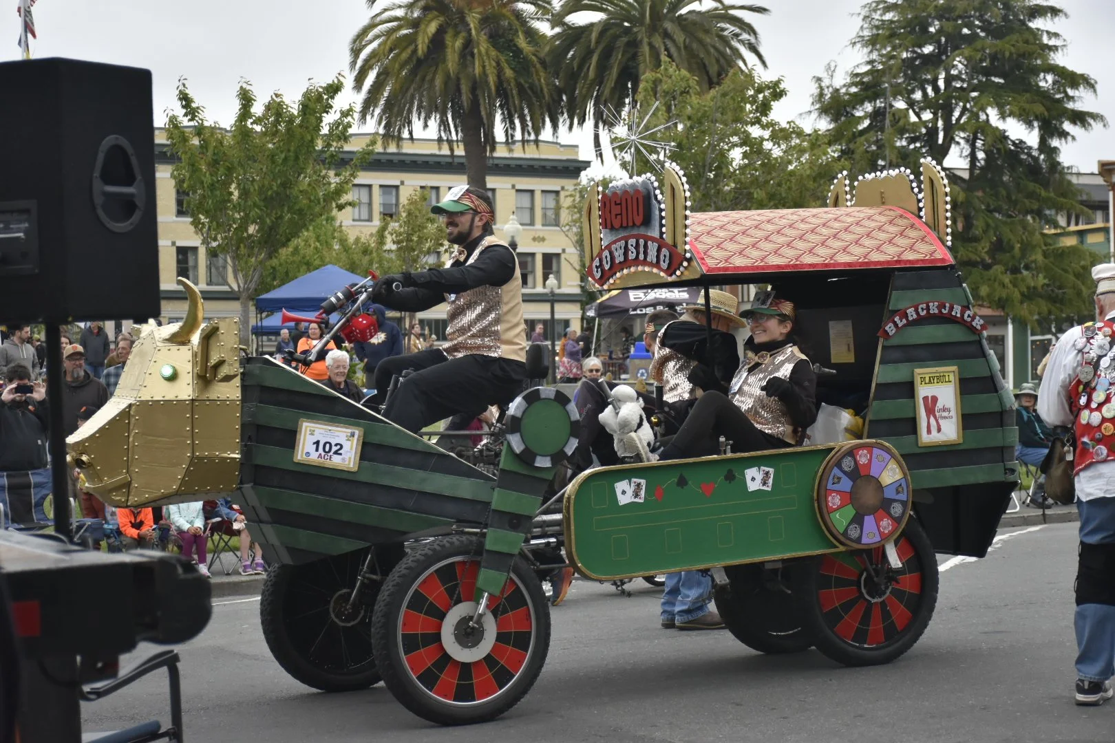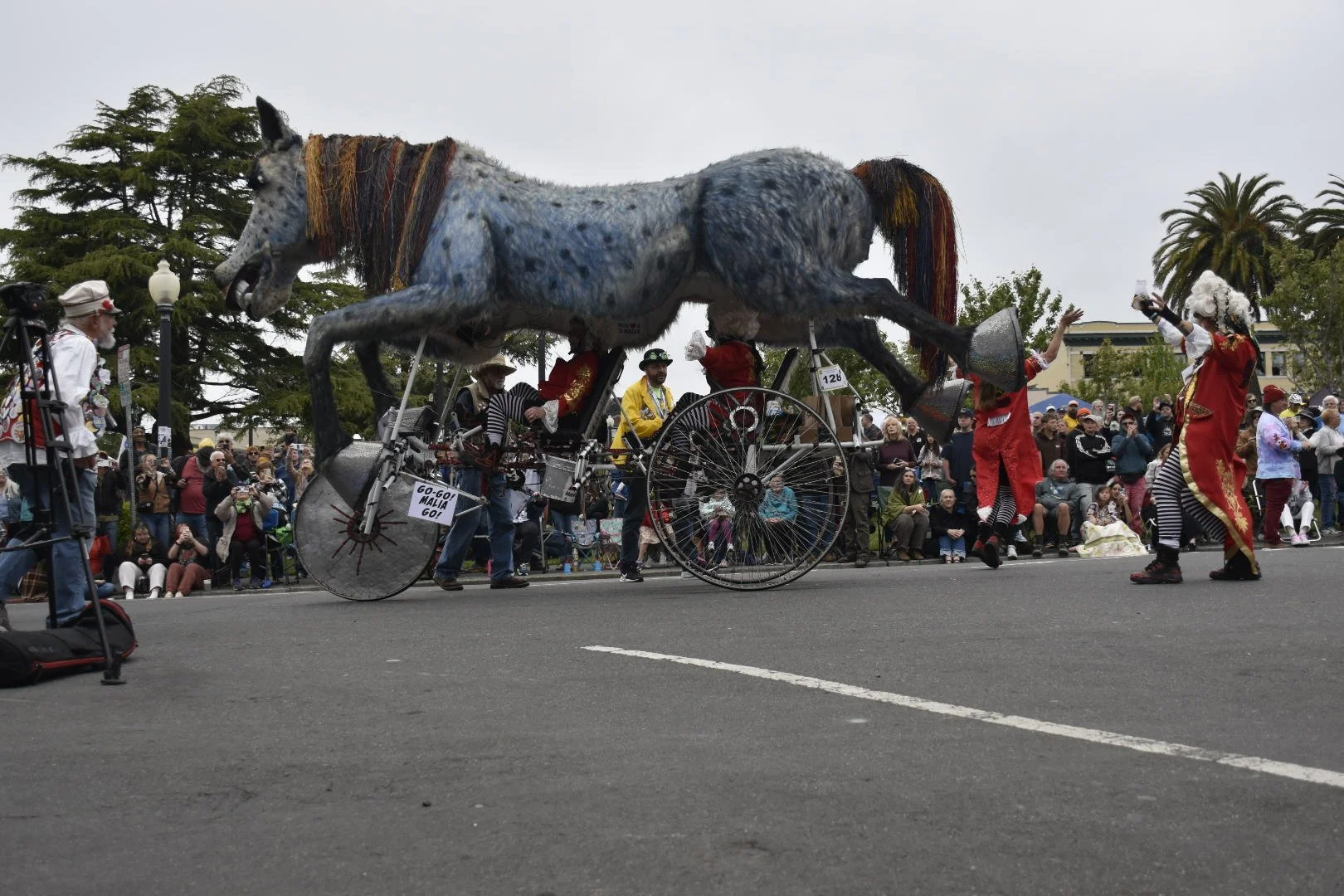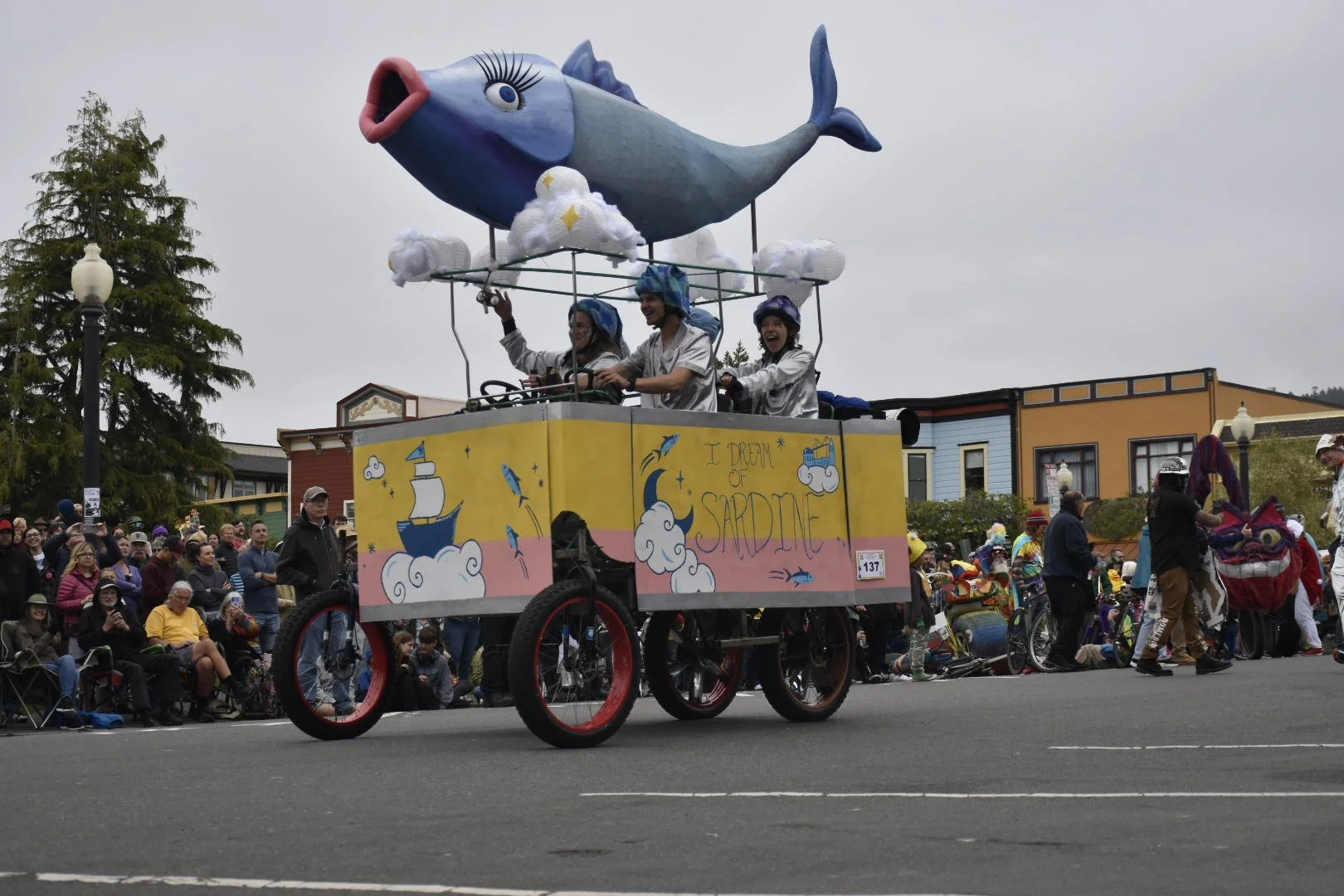 Peons and Pit Crew ride by on cycles of all sorts (Lilly Dewberry)